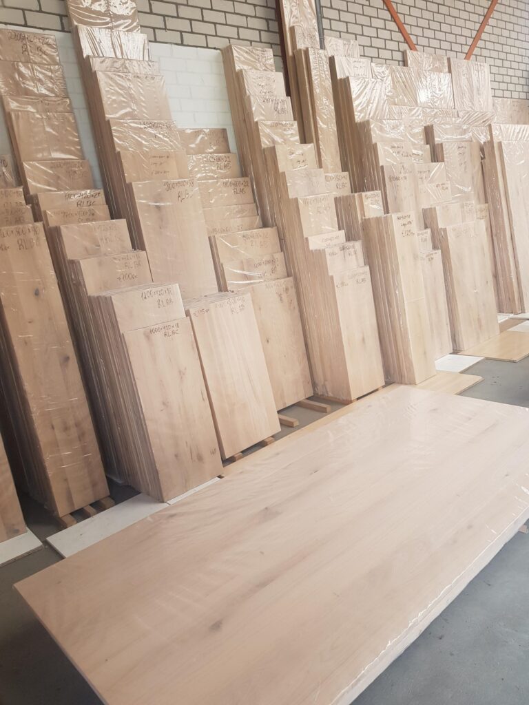 De hele productie proces is onder een dak. Wij hebben eigen fabriek in ons beheer en zitten dicht bij de bron van eikenhout, daardoor kunnen wij het beste Europees eikenhout voor de beste prijs bemachtigen. Wat een prijsvermindering effect op de eindprijs van de eiken producten doet. De gezaagde eikenplanken worden in eigen droogkamers tot 8% terug gedroogd om de werking van het eikenhout te voorkomen. 10 moderne droogkamers worden door de computerprogramma’s bestuurd, die bepalen juiste vochtigheid en temperatuur tijdens het droogproces. Door toepassen van een langere droogtechniek kunnen wij garanderen dat het eikenhout van buiten kant net zo droog is als van binnen kant.