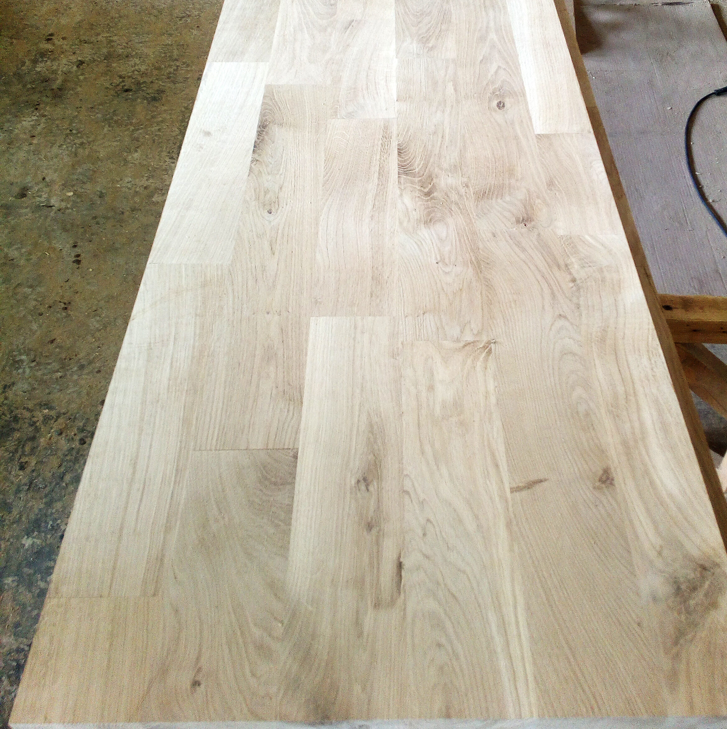 Massief eiken keukenbladen. Lamelbreedte 65-70 of 100 mm. Vingergelast (FJ). Dikte 40mm. Dikte 4 cm. A/B gradatie. Noestenvrij