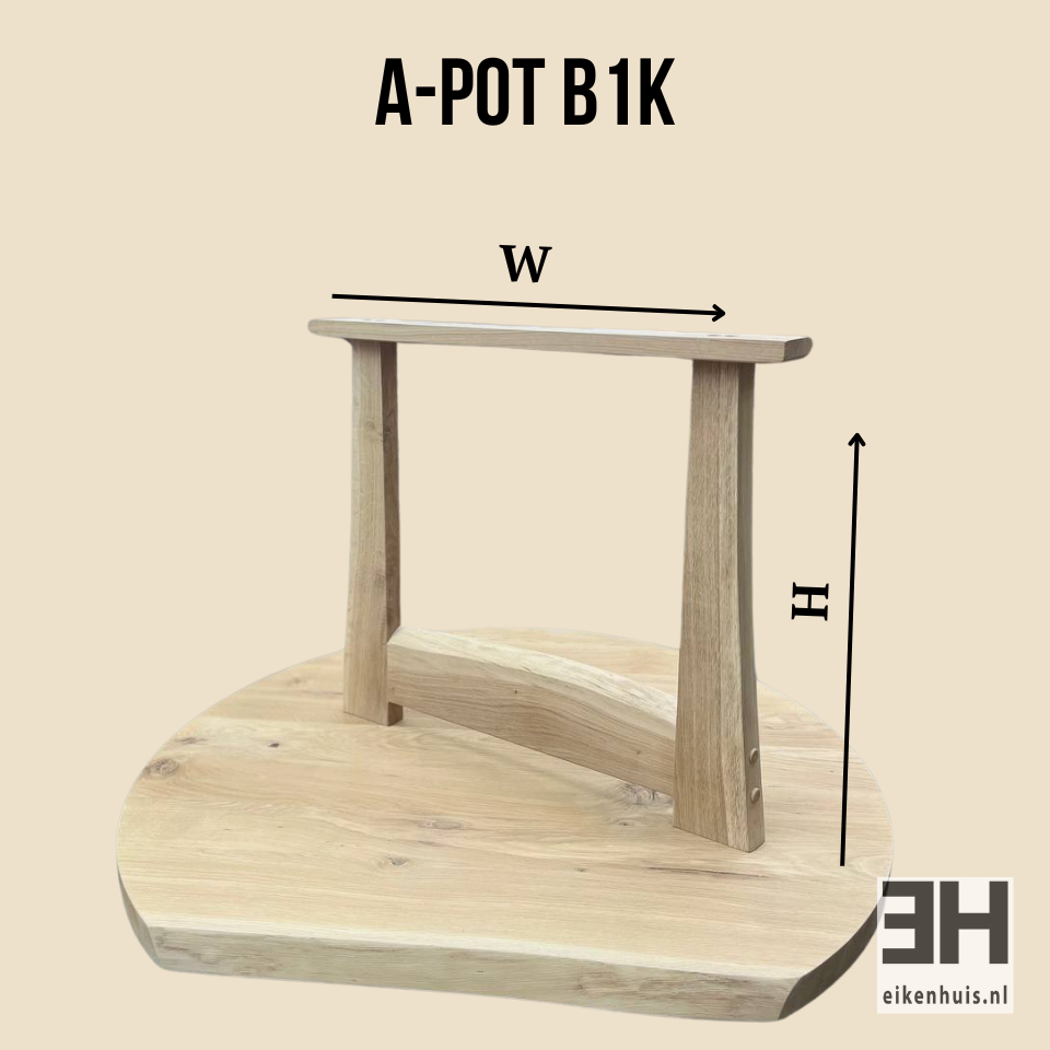 Deze eikenhouten tafelpoten in A-B1K-vorm geven een stijlvolle uitstraling aan uw (eet)tafel. Ze worden met de hand vervaardigd door ervaren ambachtslieden, wat zorgt voor de hoogste kwaliteit en een uniek uiterlijk.